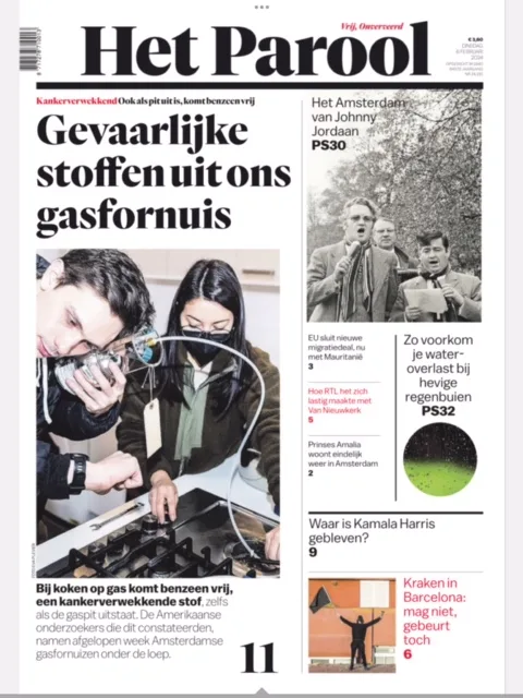 The team wanted to raise public awareness of their work, so were happy to win a front page story in the city’s most-read newspaper. This probably traded on the high profile of the university, combined with the widespread use of gas stoves in the Netherlands. The research will be published in a scientific journal in the coming months.